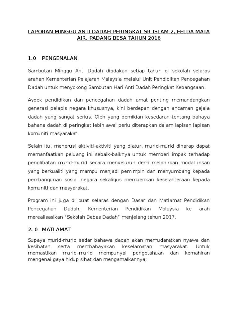 Laporan Minggu Anti Dadah Peringkat Sr Islam 2 Pdf